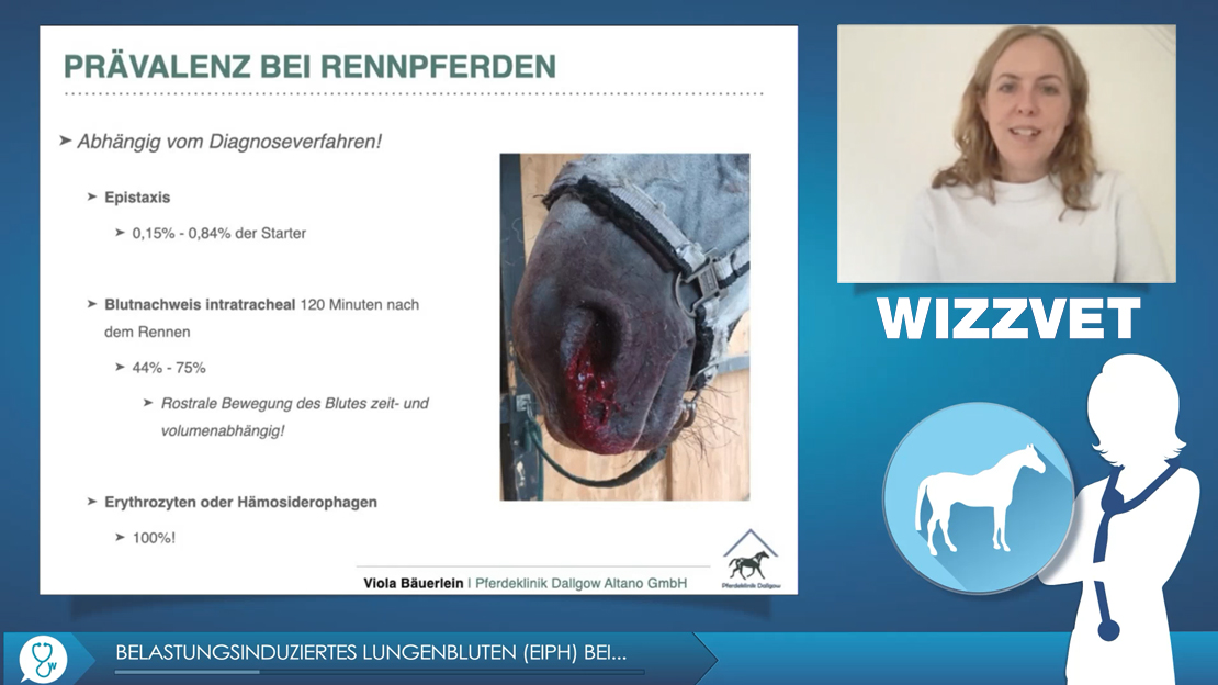 Das belastungsinduzierte Lungenbluten beim Pferd (EIPH) zeigt sich klinisch durch Epistaxis und Leistungsschwäche bzw. häufiger durch einen endoskopischen Nachweis von Blut intratracheal oder den Nachweis von Erythrozyten / Hämosiderin / Hämosiderophagen in der bronchoalveolären Lavage.