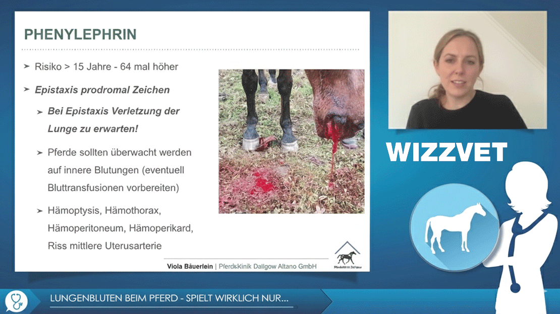 Im Krankheitsverlauf weisen die Pferde je nach Ursache, unter anderem unterschiedliche Grade von Anämien und Epistaxis auf. Das Weiteren ist ein endoskopischer Nachweise von Blut intratracheal oder Erythrozyten / Hämosiderin / Hämosiderophagen in der bronchoalveolären Lavage möglich. Je nach unterliegender Ursache fällt die Prognose und Therapie sehr variabel aus.