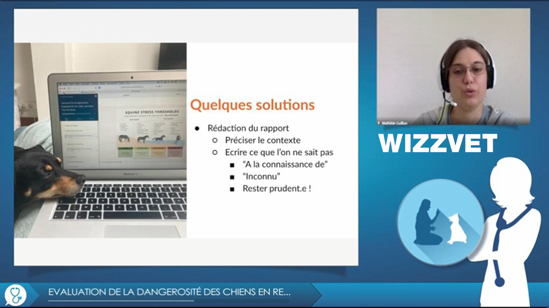 Le DV Mathilde Guillon est diplômée de l’ENVA. Elle y a consacré tout son parcours à la médecine du comportement et est titulaire du CEAV d’éthologie clinique et appliquée. Elle exerce en médecine du comportement exclusive, plus particulièrement pour les chiens, les chats et les chevaux. Elle travaille dans le centre-ouest de la France, au CHUV d’Alfort, à la clinique de référé TouraineVet à Rochecorbon, et à la clinique vétérinaire Saint-Roch à la Rochelle.